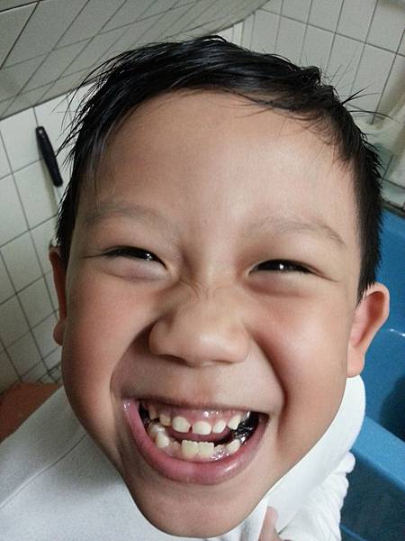 拍全口X光,這小子心情還真好,一直扭 ,問:寶貝~你看牙科耶!你心情那麼好??