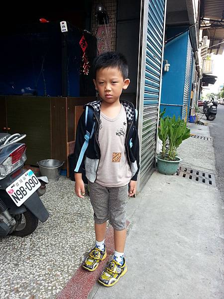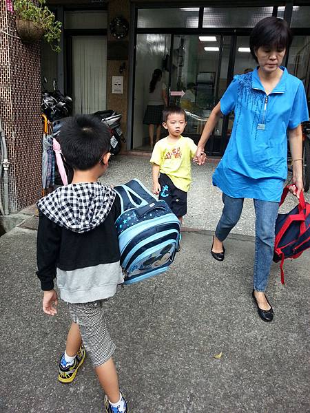 開學寶貝第一天上課的青澀樣 也是排隊上廁所 當天寶貝一句話也沒說 太怕生了
