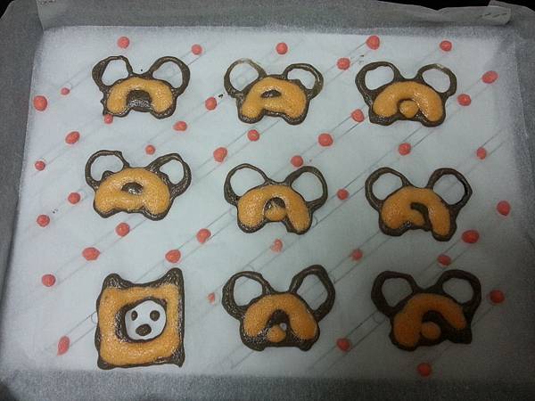 殘念!黑色蛋糕液用的不夠多 老皮的黑色線條都不見了 黏在烘培紙上了 T T