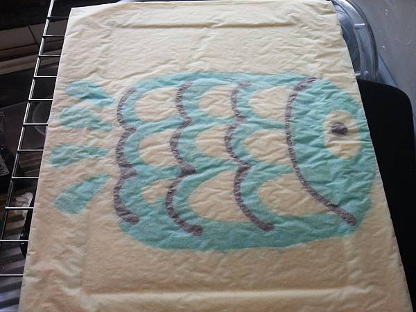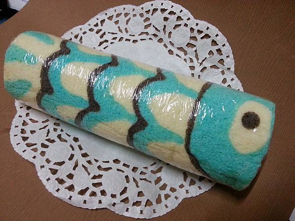 恩~ 胖胖的魚! 可以捲了~這次是用芋頭歐蕾(上次魚社網友提供的,超好吃的芋頭內餡)